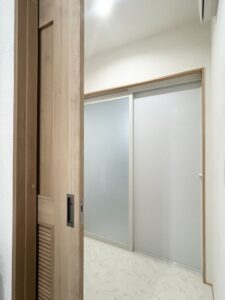 脱衣室と隣りのランドリールームと扉🚪で隔て