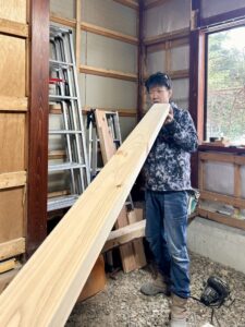木のクセ・曲がりを目視で確認し