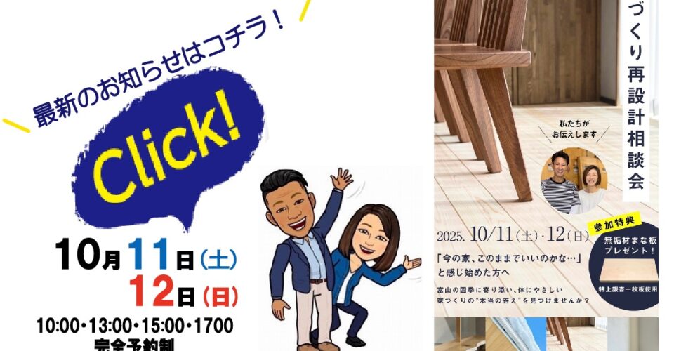 この富山でずっと大工としてやってきた私自身の経験と、信頼出来る職人さんたちの知恵が詰まった内容だと自負しているので、これから家づくりをしたいなーとお考えの方も、今まさに具体的に家づくりを進めている方も、この機会にぜひこの勉強会にご参加いただければと思います。